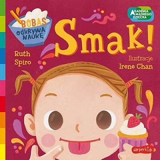 „Smak! Bobas odkrywa naukę. Akademia mądrego dziecka” to pięknie i kolorowo ilustrowana książeczka edukacyjna dla najmłodszych, która najprostszymi słowami i pojęciami zapoznaje maluszki z działaniem jednego ze zmysłów - smaku. Książeczka w prosty sposób pokazuje jak to się dzieje, że dzidziuś jedząc truskawkę czuje słodki smak, a cytrynę kwaśny.