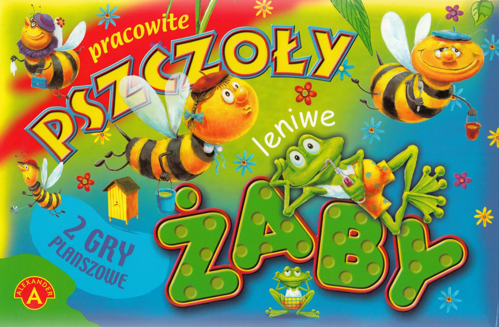 Pracowite pszczoły ; Leniwe żaby - Chwaszczyno k/Gdyni : Alexander, 2023 - 2 gry (1 dwustronna plansza, 4 pionki , 1 kostka do gry) : karton, plastik, kolor ; w pudełku 5x20x18 cm + instrukcja (8 stron : ilustracje ; 21 cm).