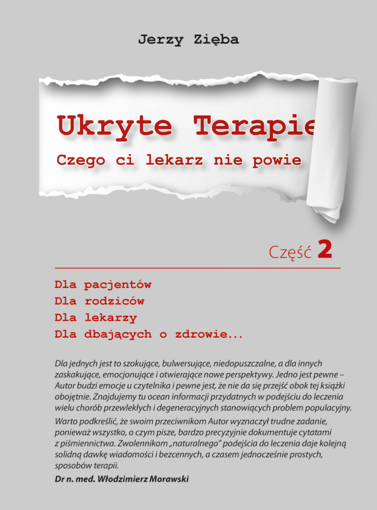 Ze względu na ciągle szerzącą się dezinformacje odnośnie tłuszczów zwierzęcych i choroby wieńcowej serca, w drugiej części "Ukrytych terapii" wyjaśniam to znacznie dokładniej, wyjawiając kłamstwa jakie temu zagadnieniu towarzyszą od dziesiątek lat. Okłamywanie społeczeństwa jak również lekarzy w sprawie cholesterolu wydaje się nie mieć granic. Temat ten został potraktowany również znacznie szerzej szczególnie, że przemysł farmaceutyczny w sposób perfekcyjny oszukał lekarzy w sprawach cholesterolu. Lekarze zupełnie nieświadomie dopuszczają się absolutnie skandalicznych praktyk dotyczących jego obniżania. Książka opisuje w jaki sposób oszukano lekarzy jak i pacjentów. Największym problemem jaki przebijał się bezustannie w komentarzach czy rozmowach bezpośrednich były oczywiście choroby nowotworowe. W tych wszystkich opisach wstrząsające było jedno: przerażający brak skuteczności medycyny akademickiej w leczeniu tej choroby. Lekarze i pacjenci znajdą w książce szczegółowe opisy metod czy substancji, dzięki którym człowieka chorego na nowotwór można leczyć znacznie bardziej efektywnie, bezpieczniej i taniej. Opisywane substancje czy też metody leczenia choroby nowotworowej, co skrzętnie ukrywane przed pacjentami, jak i środowiskiem medycznym. W rozdziale o szczepionkach ujawnione są fakty, o których opinii publicznej się nie zawiadamia. Fakty te, bezsprzecznie wskazują na to, że lekarze jak i rodzice dzieci zostali perfidnie oszukani. Książka również opisuje skandaliczne, a jednocześnie nie ujawniane społeczeństwu fakty dotyczące systemu zdrowia, które znajdują się na granicy przestępstwa kryminalnego. Książka pokazuje także sposób rozwiązania wielu problemów dotyczących leczenia pacjentów przewlekle chorych.